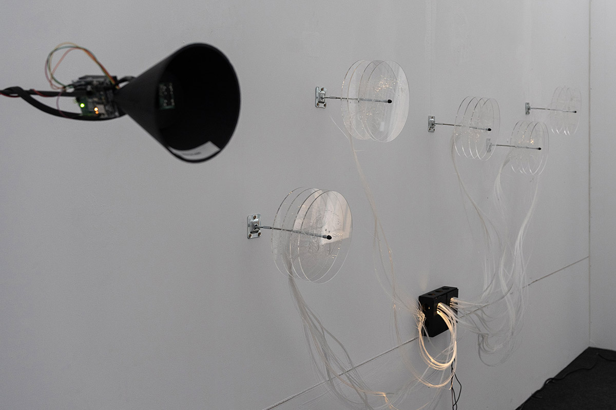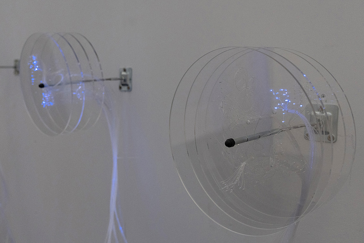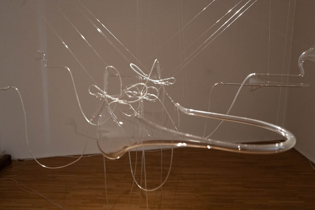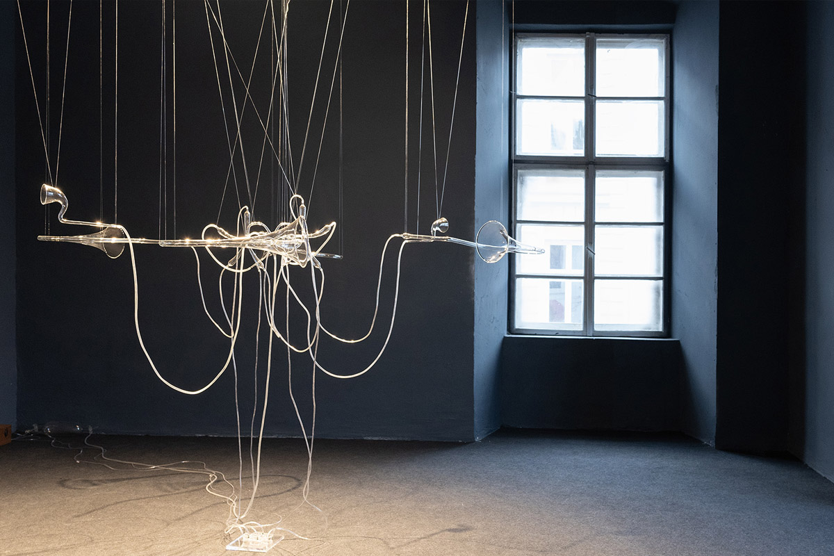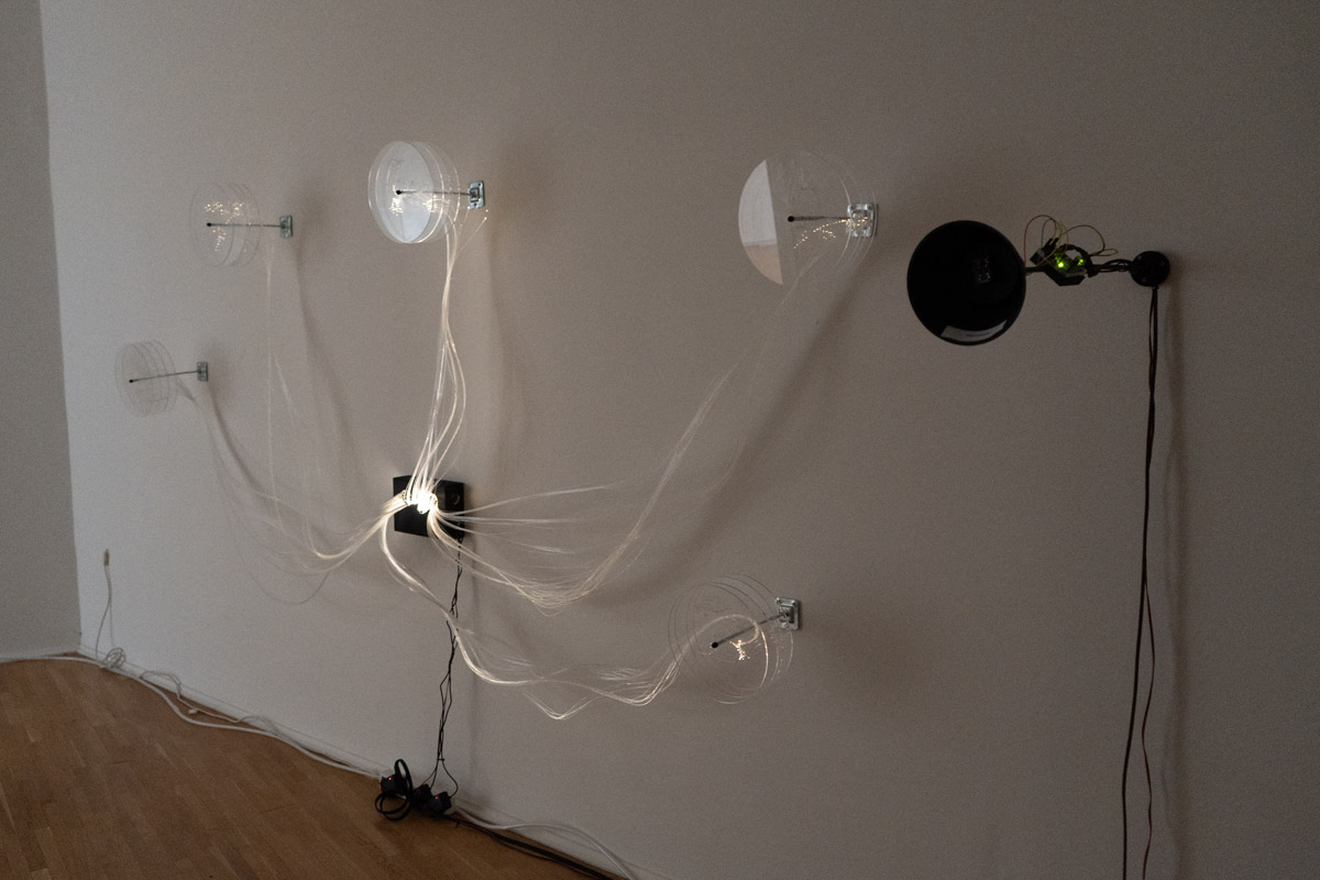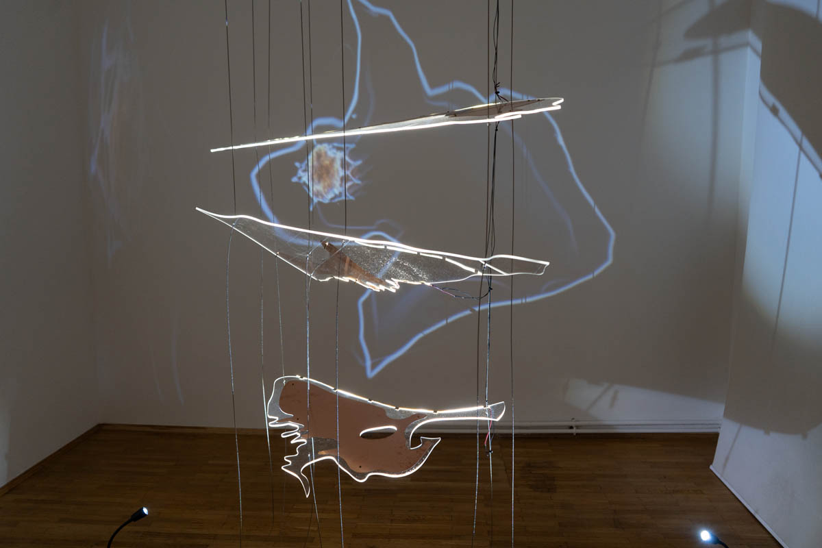 Coding Drops continuă explorarea interdisciplinară a Asociației Qolony asupra teritoriilor modelate de apă, precum Delta Dunării, extinzând această investigație către intersecțiile dintre senzorialitatea mediului, comunicarea mediată prin fluide și poetica percepției. În colaborare cu Institutul Național de Cercetare-Dezvoltare Delta Dunării (INCDDD) și Institutul Național de Cercetare-Dezvoltare pentru Fizica Laserilor, Plasmei și Radiației - INFLPR, expoziția își ancorează gesturile speculative într-un cadru de cercetare științifică și artistică contextualizată. Artiștii au realizat expediții pe teren și observații in situ, au colectat probe, au dialogat cu cercetători și au experimentat cu tehnologii optice și bio-inspirate. Astfel, instalațiile prezentate reflectă asupra fluidității nu doar ca proprietate materială, ci ca mod de gândire – un cadru conceptual care respinge controlul, cultivă relaționarea inter-specii și îmbrățișează incertitudinea. Ioana Vreme Moser, Mark IJzerman și Floriama Cândea explorează, fiecare, câte o dimensiune a sistemelor fluide ca forme de expresie și interpretare. De la ritmurile nautofoanelor la pulsațiile luminoase declanșate de respirație, până la urmele chimice ale apelor contaminate, Coding Drops ne invită să percepem lumea nu prin structuri fixe, ci prin sisteme instabile, permeabile, reactive. În lucrările lor, fluidele devin limbaje, corpuri senzoriale, purtătoare de memorie și transformare. Ele nu doar transportă informație sau memorie – ci modelează, distorsionează, suspendă, granițele dintre mesaj și zgomot, dintre structură și derivă. O picătură de apă poate păstra urme chimice ale unei istorii industriale. O respirație poate declanșa un schimb invizibil. Un semnal sonor poate traversa ceata cu un ritm codificat. Astfel, fluidele devin deopotrivă semnal și mediu – arhive ecologice și instrumente ale speculației. În Nautophone Telecom, Ioana Vreme Moser reconstruiește un circuit pneumatic, în care impulsuri de aer comprimat reactivează semnalele acustice folosite odinioară pentru navigație în Delta Dunării – transformând presiunea aerului în prezență acustică și expresie ritmică. În Neural Bloom, Floriama Cândea creează o rețea de noduri sculpturale luminoase, inspirate de plante acvatice și de relațiile de schimb dintre ele. Fiecare nod „respiră” în răspuns la CO₂-ul din expirația vizitatorului – aducând în prim-plan atmosfera ca bun comun fragil și partajat. În Watershed (Final Call), Mark IJzerman urmărește traseul apei contaminate care străbate straturile filtrante ale deltei, folosind textile reactive, sunete subacvatice și proiecții microscopice pentru a face vizibilă comunicarea deficitară în ecosisteme supuse presiunii, poluării. În fiecare dintre aceste lucrări, sistemele fluide modulează informația într-un mod care rezistă repetiției și controlului. Fluidele leagă corpuri, formează infrastructuri comune și creează premisele unei colaborări involuntare. Ele se schimba, pulsează și se află mereu în pragul unei noi forme. În acest fel, oglindesc logica ecosistemelor și a dinamicilor sociale – non-lineare, neimediate, reactive, cateodata încurcate și lente în procesul de refacere. Într-o lume marcată de temperaturi în creștere, semnale care dispar și ecologii în transformare, poate că nu contează atât de mult cât de clar vorbim, ci cât de atent învățăm să ascultăm