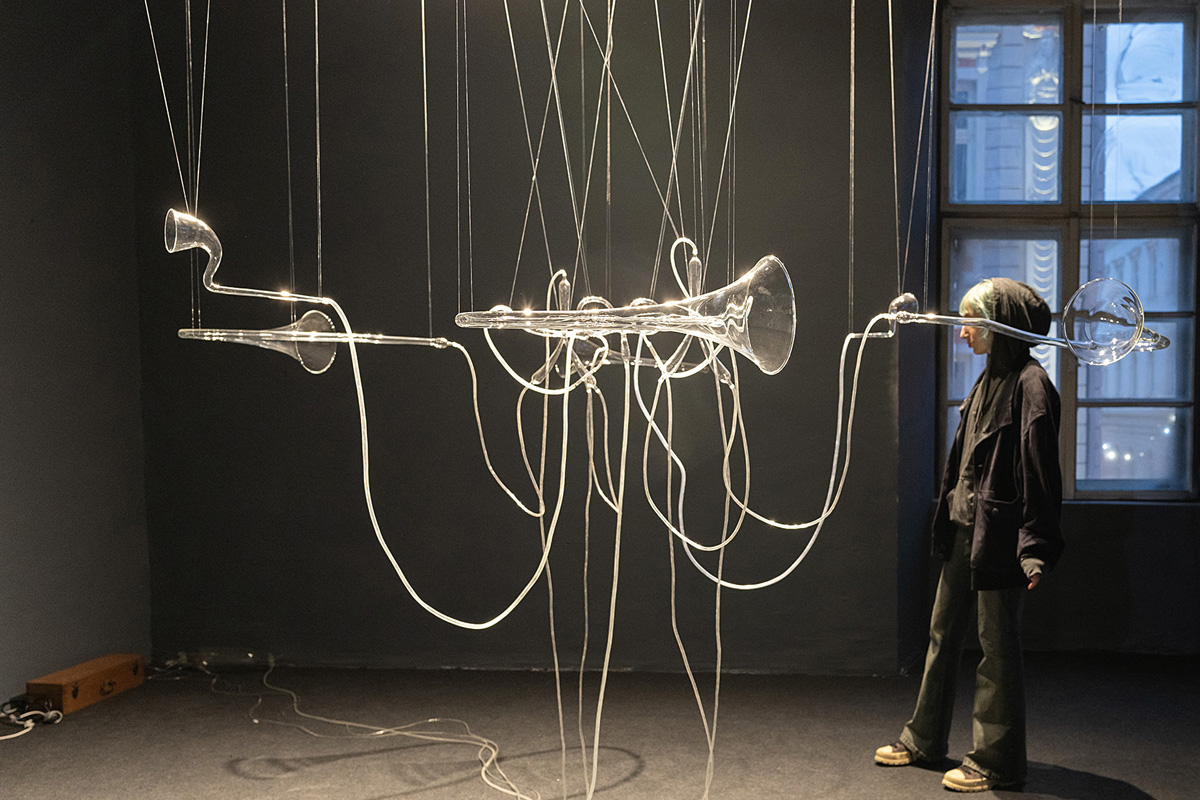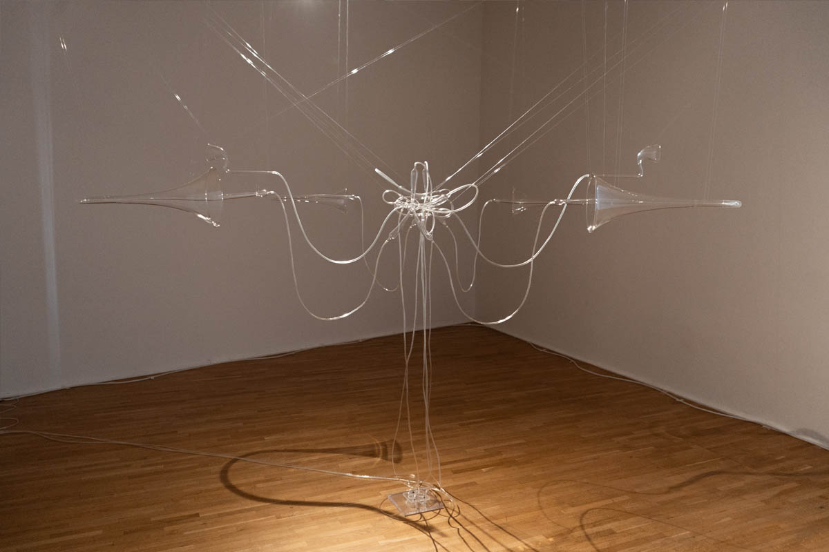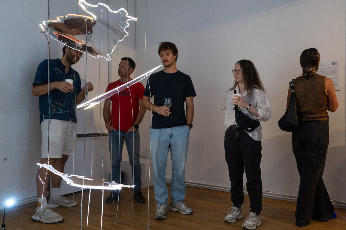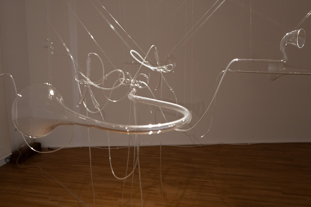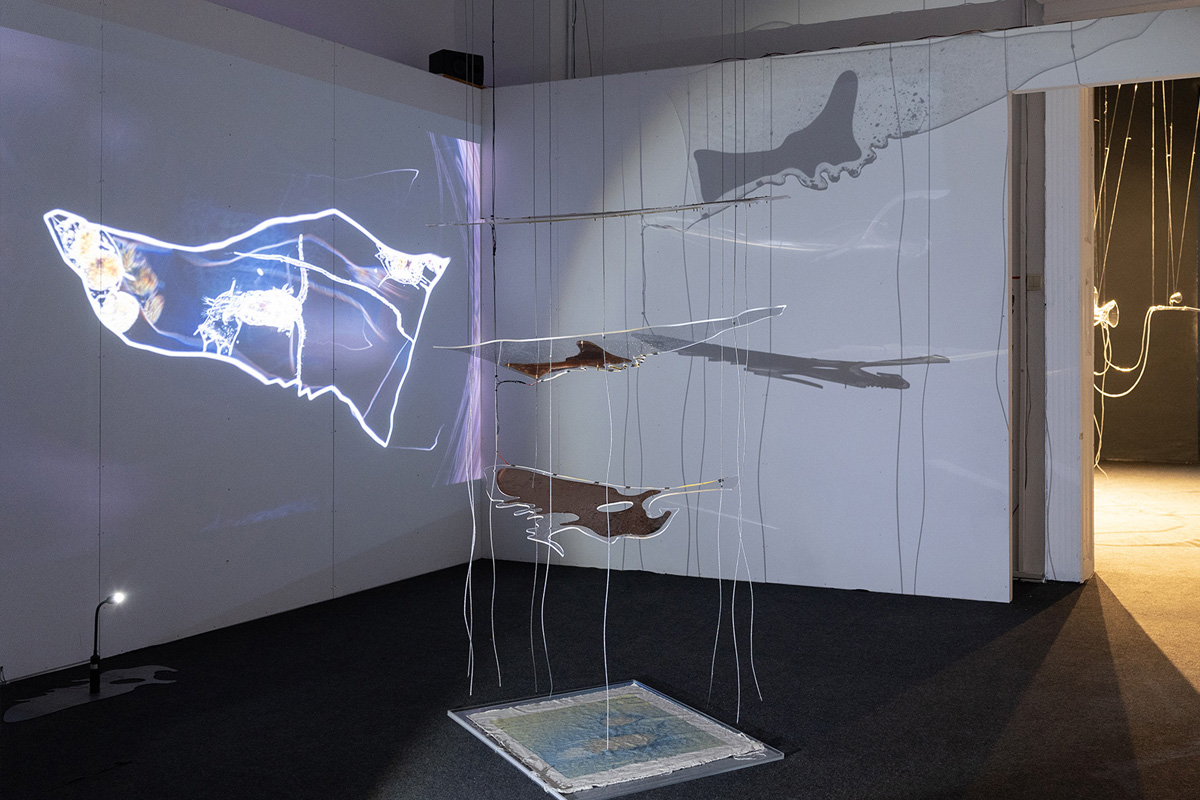 Coding Drops continuă explorarea interdisciplinară a Asociației Qolony asupra teritoriilor modelate de apă, precum Delta Dunării, extinzând această investigație către intersecțiile dintre senzorialitatea mediului, comunicarea mediată prin fluide și poetica percepției. În colaborare cu Institutul Național de Cercetare-Dezvoltare Delta Dunării (INCDDD) și Institutul Național de Cercetare-Dezvoltare pentru Fizica Laserilor, Plasmei și Radiației - INFLPR, expoziția își ancorează gesturile speculative într-un cadru de cercetare științifică și artistică contextualizată. Artiștii au realizat expediții pe teren și observații in situ, au colectat probe, au dialogat cu cercetători și au experimentat cu tehnologii optice și bio-inspirate. Astfel, instalațiile prezentate reflectă asupra fluidității nu doar ca proprietate materială, ci ca mod de gândire – un cadru conceptual care respinge controlul, cultivă relaționarea inter-specii și îmbrățișează incertitudinea. Ioana Vreme Moser, Mark IJzerman și Floriama Cândea explorează, fiecare, câte o dimensiune a sistemelor fluide ca forme de expresie și interpretare. De la ritmurile nautofoanelor la pulsațiile luminoase declanșate de respirație, până la urmele chimice ale apelor contaminate, Coding Drops ne invită să percepem lumea nu prin structuri fixe, ci prin sisteme instabile, permeabile, reactive. În lucrările lor, fluidele devin limbaje, corpuri senzoriale, purtătoare de memorie și transformare. Ele nu doar transportă informație sau memorie – ci modelează, distorsionează, suspendă, granițele dintre mesaj și zgomot, dintre structură și derivă. O picătură de apă poate păstra urme chimice ale unei istorii industriale. O respirație poate declanșa un schimb invizibil. Un semnal sonor poate traversa ceata cu un ritm codificat. Astfel, fluidele devin deopotrivă semnal și mediu – arhive ecologice și instrumente ale speculației. În Nautophone Telecom, Ioana Vreme Moser reconstruiește un circuit pneumatic, în care impulsuri de aer comprimat reactivează semnalele acustice folosite odinioară pentru navigație în Delta Dunării – transformând presiunea aerului în prezență acustică și expresie ritmică. În Neural Bloom, Floriama Cândea creează o rețea de noduri sculpturale luminoase, inspirate de plante acvatice și de relațiile de schimb dintre ele. Fiecare nod „respiră” în răspuns la CO₂-ul din expirația vizitatorului – aducând în prim-plan atmosfera ca bun comun fragil și partajat. În Watershed (Final Call), Mark IJzerman urmărește traseul apei contaminate care străbate straturile filtrante ale deltei, folosind textile reactive, sunete subacvatice și proiecții microscopice pentru a face vizibilă comunicarea deficitară în ecosisteme supuse presiunii, poluării. În fiecare dintre aceste lucrări, sistemele fluide modulează informația într-un mod care rezistă repetiției și controlului. Fluidele leagă corpuri, formează infrastructuri comune și creează premisele unei colaborări involuntare. Ele se schimba, pulsează și se află mereu în pragul unei noi forme. În acest fel, oglindesc logica ecosistemelor și a dinamicilor sociale – non-lineare, neimediate, reactive, cateodata încurcate și lente în procesul de refacere. Într-o lume marcată de temperaturi în creștere, semnale care dispar și ecologii în transformare, poate că nu contează atât de mult cât de clar vorbim, ci cât de atent învățăm să ascultăm