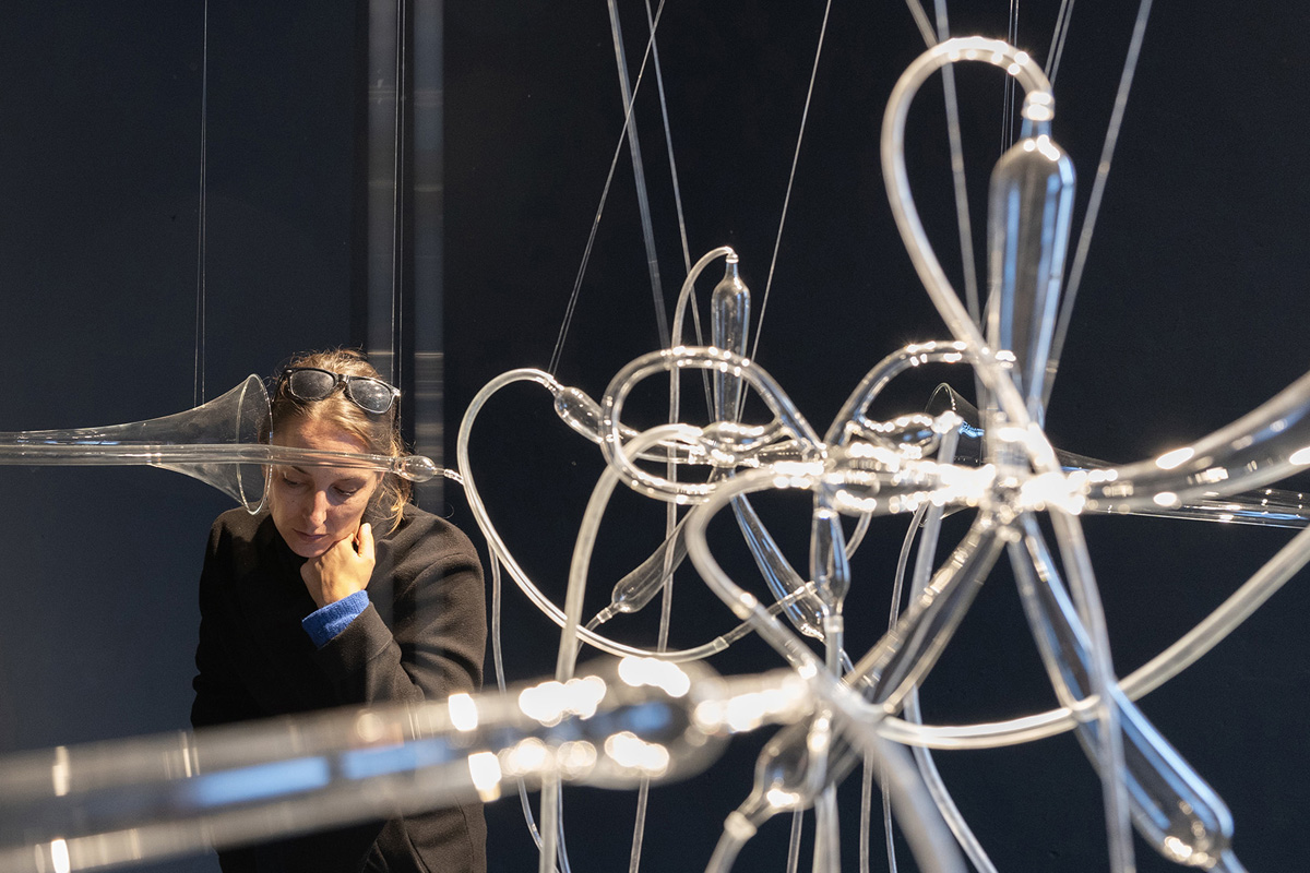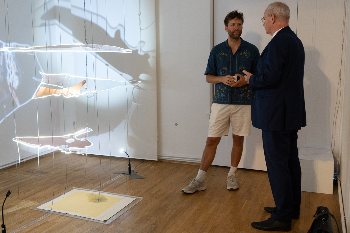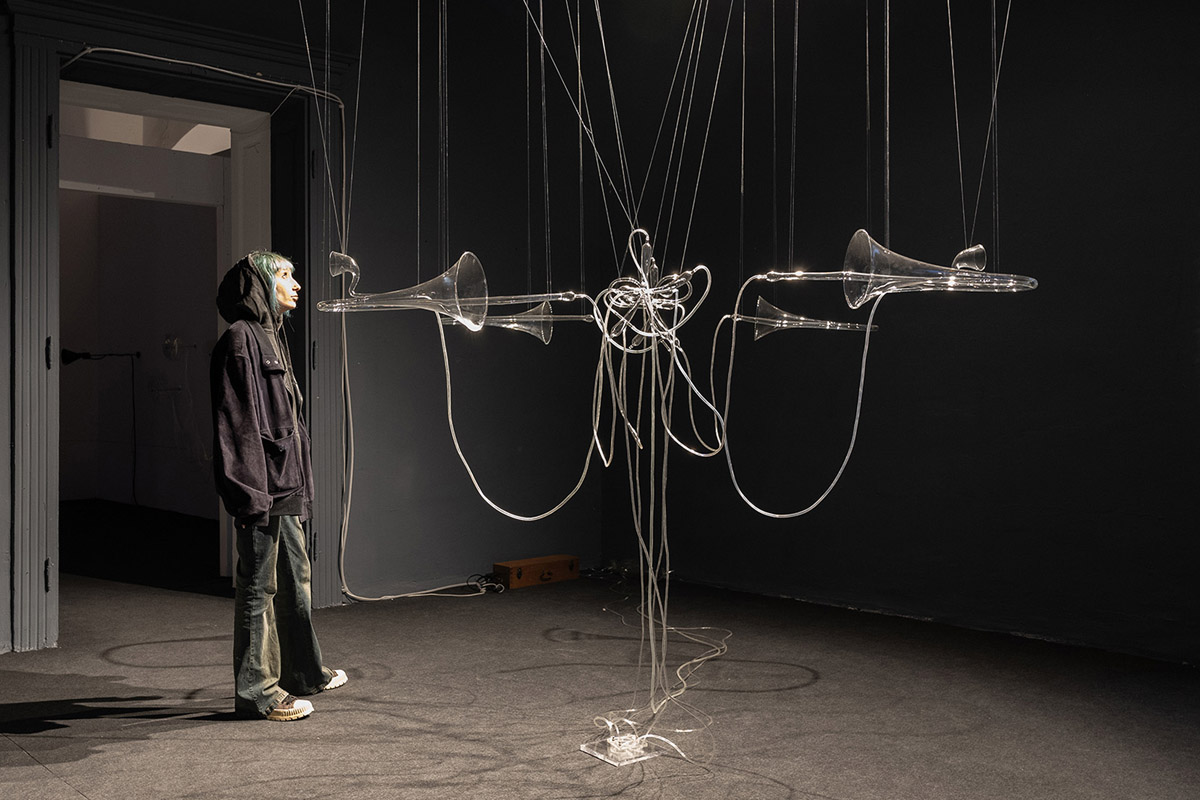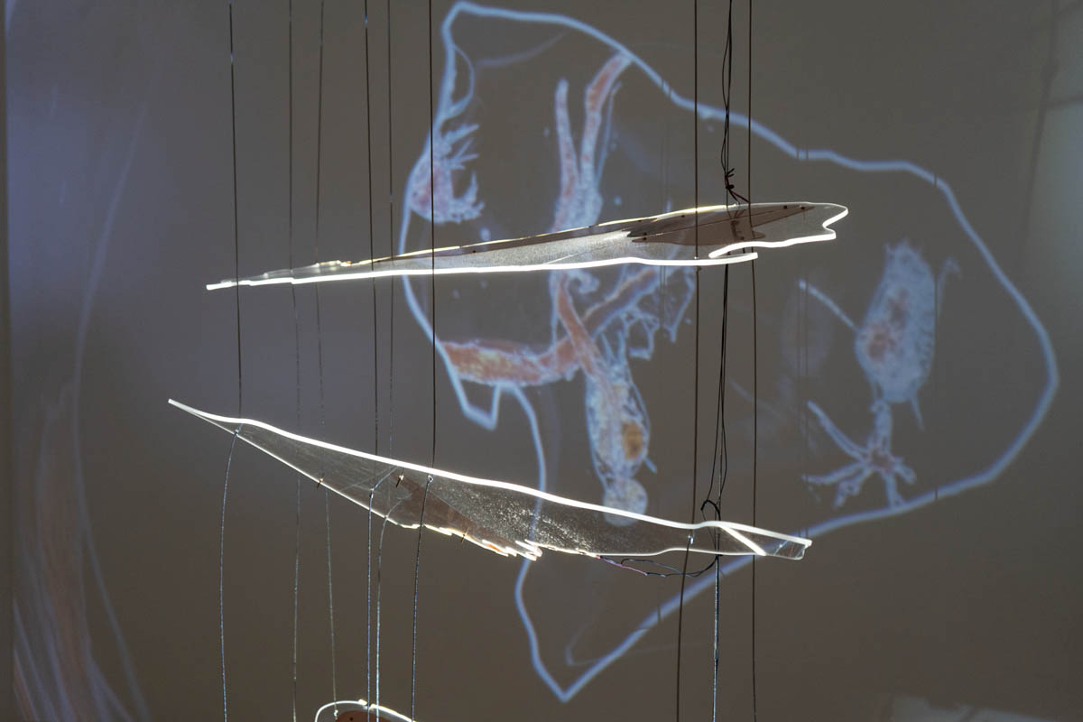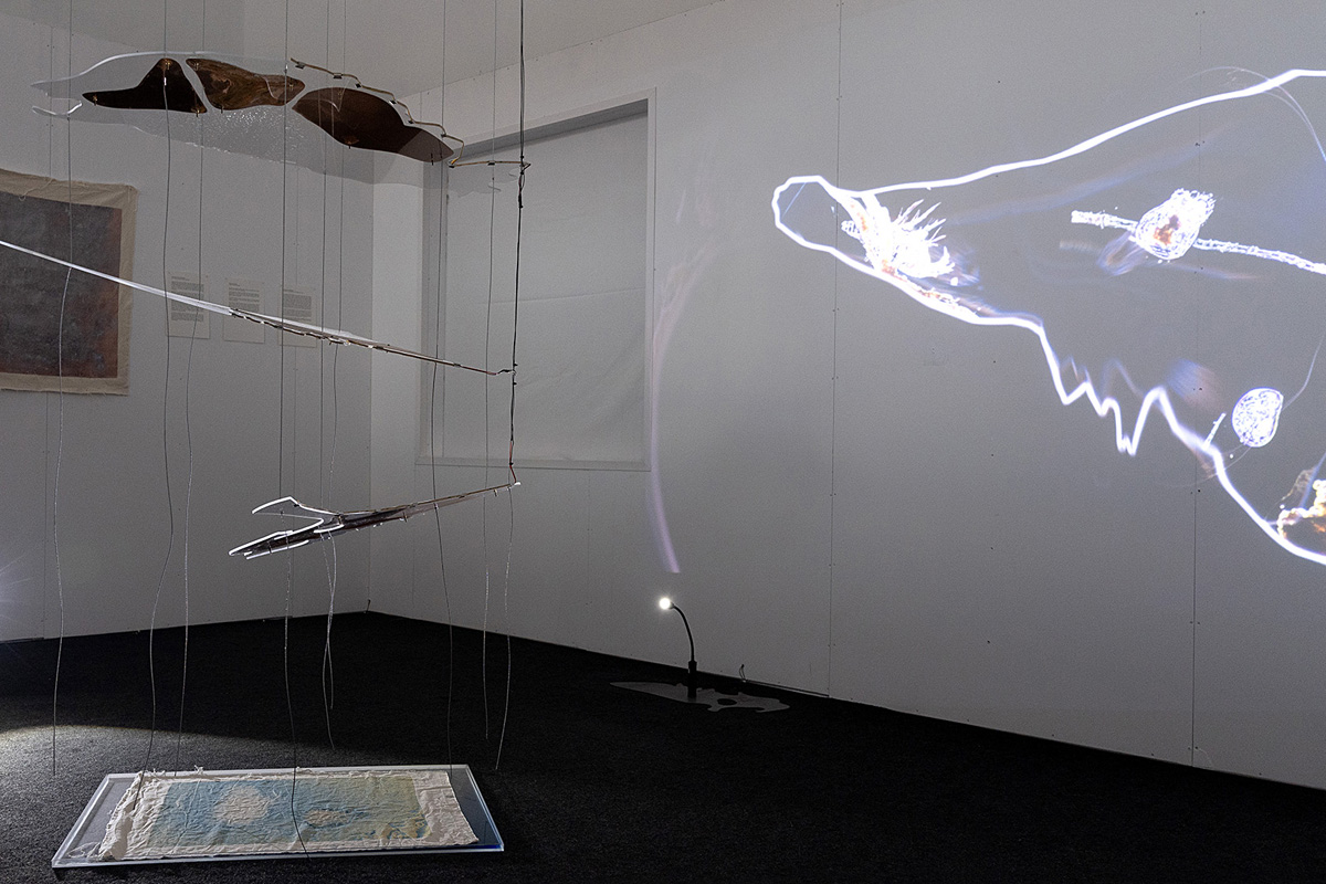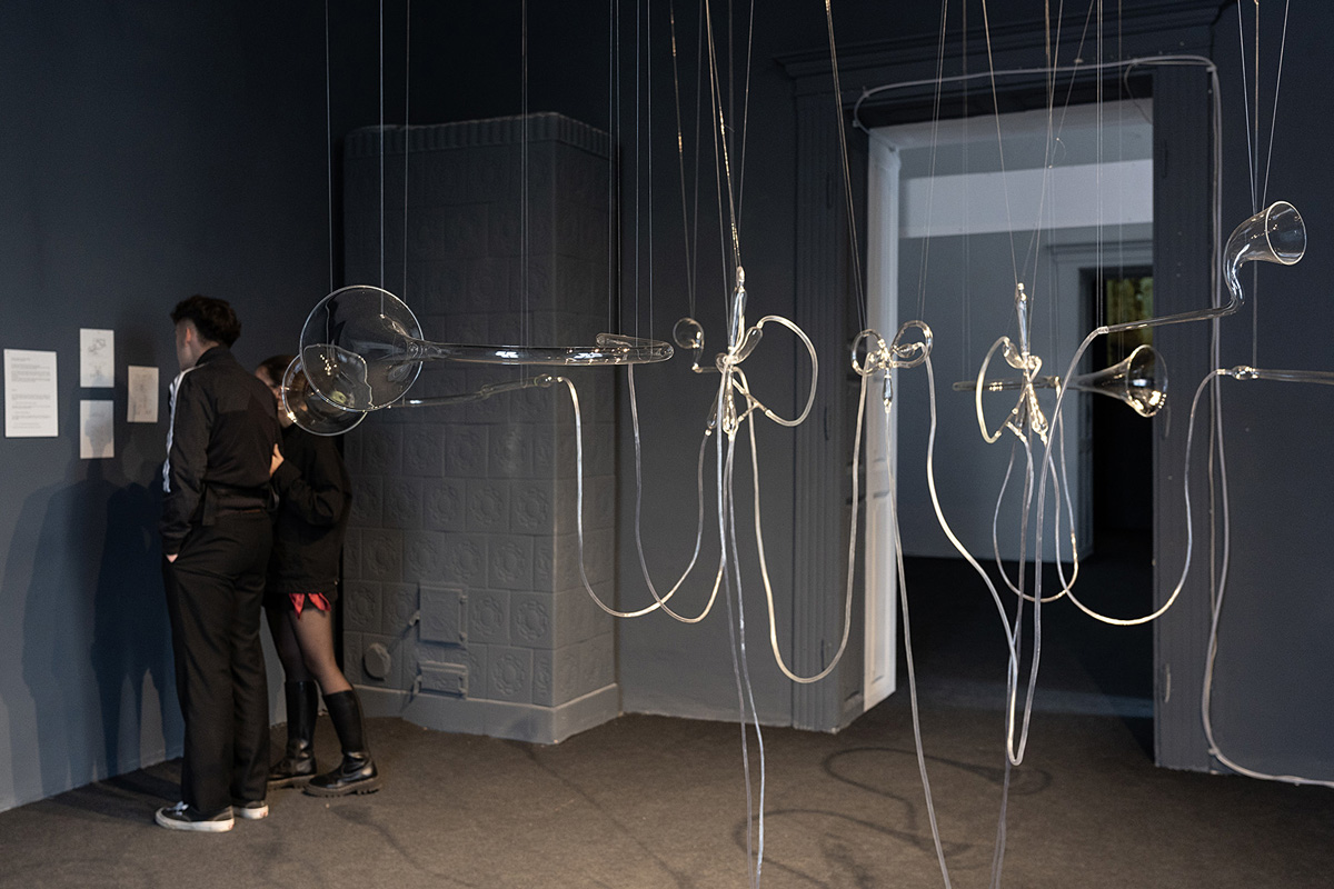 Coding Drops continuă explorarea interdisciplinară a Asociației Qolony asupra teritoriilor modelate de apă, precum Delta Dunării, extinzând această investigație către intersecțiile dintre senzorialitatea mediului, comunicarea mediată prin fluide și poetica percepției. În colaborare cu Institutul Național de Cercetare-Dezvoltare Delta Dunării (INCDDD) și Institutul Național de Cercetare-Dezvoltare pentru Fizica Laserilor, Plasmei și Radiației - INFLPR, expoziția își ancorează gesturile speculative într-un cadru de cercetare științifică și artistică contextualizată. Artiștii au realizat expediții pe teren și observații in situ, au colectat probe, au dialogat cu cercetători și au experimentat cu tehnologii optice și bio-inspirate. Astfel, instalațiile prezentate reflectă asupra fluidității nu doar ca proprietate materială, ci ca mod de gândire – un cadru conceptual care respinge controlul, cultivă relaționarea inter-specii și îmbrățișează incertitudinea. Ioana Vreme Moser, Mark IJzerman și Floriama Cândea explorează, fiecare, câte o dimensiune a sistemelor fluide ca forme de expresie și interpretare. De la ritmurile nautofoanelor la pulsațiile luminoase declanșate de respirație, până la urmele chimice ale apelor contaminate, Coding Drops ne invită să percepem lumea nu prin structuri fixe, ci prin sisteme instabile, permeabile, reactive. În lucrările lor, fluidele devin limbaje, corpuri senzoriale, purtătoare de memorie și transformare. Ele nu doar transportă informație sau memorie – ci modelează, distorsionează, suspendă, granițele dintre mesaj și zgomot, dintre structură și derivă. O picătură de apă poate păstra urme chimice ale unei istorii industriale. O respirație poate declanșa un schimb invizibil. Un semnal sonor poate traversa ceata cu un ritm codificat. Astfel, fluidele devin deopotrivă semnal și mediu – arhive ecologice și instrumente ale speculației. În Nautophone Telecom, Ioana Vreme Moser reconstruiește un circuit pneumatic, în care impulsuri de aer comprimat reactivează semnalele acustice folosite odinioară pentru navigație în Delta Dunării – transformând presiunea aerului în prezență acustică și expresie ritmică. În Neural Bloom, Floriama Cândea creează o rețea de noduri sculpturale luminoase, inspirate de plante acvatice și de relațiile de schimb dintre ele. Fiecare nod „respiră” în răspuns la CO₂-ul din expirația vizitatorului – aducând în prim-plan atmosfera ca bun comun fragil și partajat. În Watershed (Final Call), Mark IJzerman urmărește traseul apei contaminate care străbate straturile filtrante ale deltei, folosind textile reactive, sunete subacvatice și proiecții microscopice pentru a face vizibilă comunicarea deficitară în ecosisteme supuse presiunii, poluării. În fiecare dintre aceste lucrări, sistemele fluide modulează informația într-un mod care rezistă repetiției și controlului. Fluidele leagă corpuri, formează infrastructuri comune și creează premisele unei colaborări involuntare. Ele se schimba, pulsează și se află mereu în pragul unei noi forme. În acest fel, oglindesc logica ecosistemelor și a dinamicilor sociale – non-lineare, neimediate, reactive, cateodata încurcate și lente în procesul de refacere. Într-o lume marcată de temperaturi în creștere, semnale care dispar și ecologii în transformare, poate că nu contează atât de mult cât de clar vorbim, ci cât de atent învățăm să ascultăm